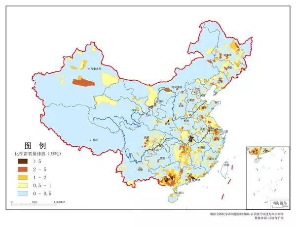 “化學(xué)需氧量(COD)”是一種評(píng)價(jià)水體污染程度的綜合性指標(biāo),是指利用化學(xué)氧化劑(如重鉻酸鉀)將水中的還原性物質(zhì)(如有機(jī)物)氧化分解所消耗的氧量。中國(guó)化學(xué)需氧量排放分布與二氧化硫排放分布類(lèi)似,主要分布在比較發(fā)達(dá)的城市及工業(yè)化程度較高的城市群群。