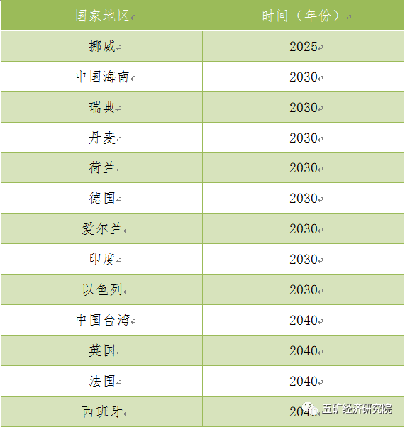 1 各國(guó)地區(qū)禁售燃油車時(shí)間表