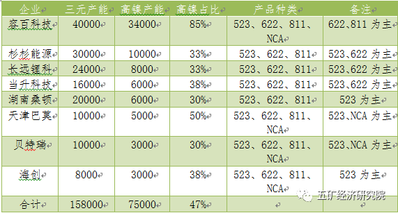 5 中國(guó)三元材料企業(yè)高鎳產(chǎn)能布局情況