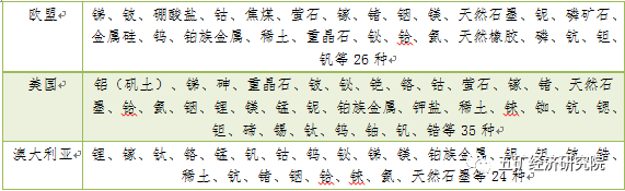 4 西方國(guó)家關(guān)鍵礦產(chǎn)名單