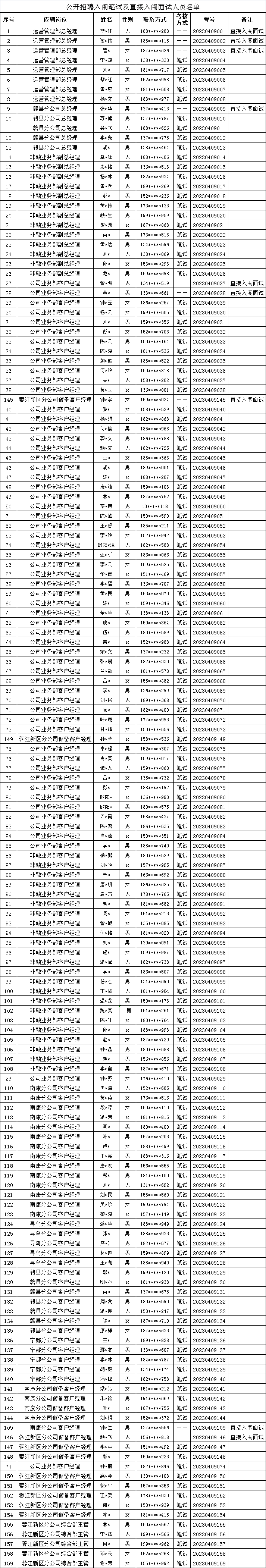 根據(jù)集團(tuán)公司招聘公告的相關(guān)規(guī)定和程序,經(jīng)過(guò)報(bào)名、資格審查等工作,現(xiàn)將本次招聘入闈筆試、直接入闈面試人員名單(未進(jìn)入筆試的人員不另行通知)及有關(guān)事項(xiàng)公告如下: